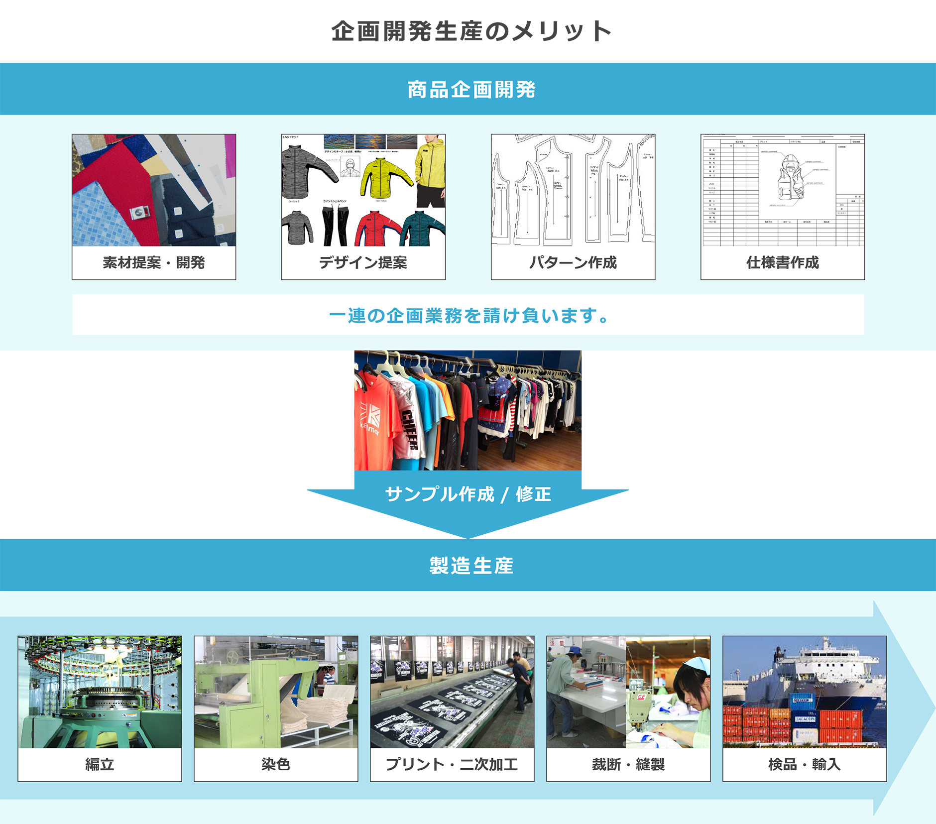 仲介業者を入れないスピーディな企画と生産で、要望に応えられるモノづくりを実現します!